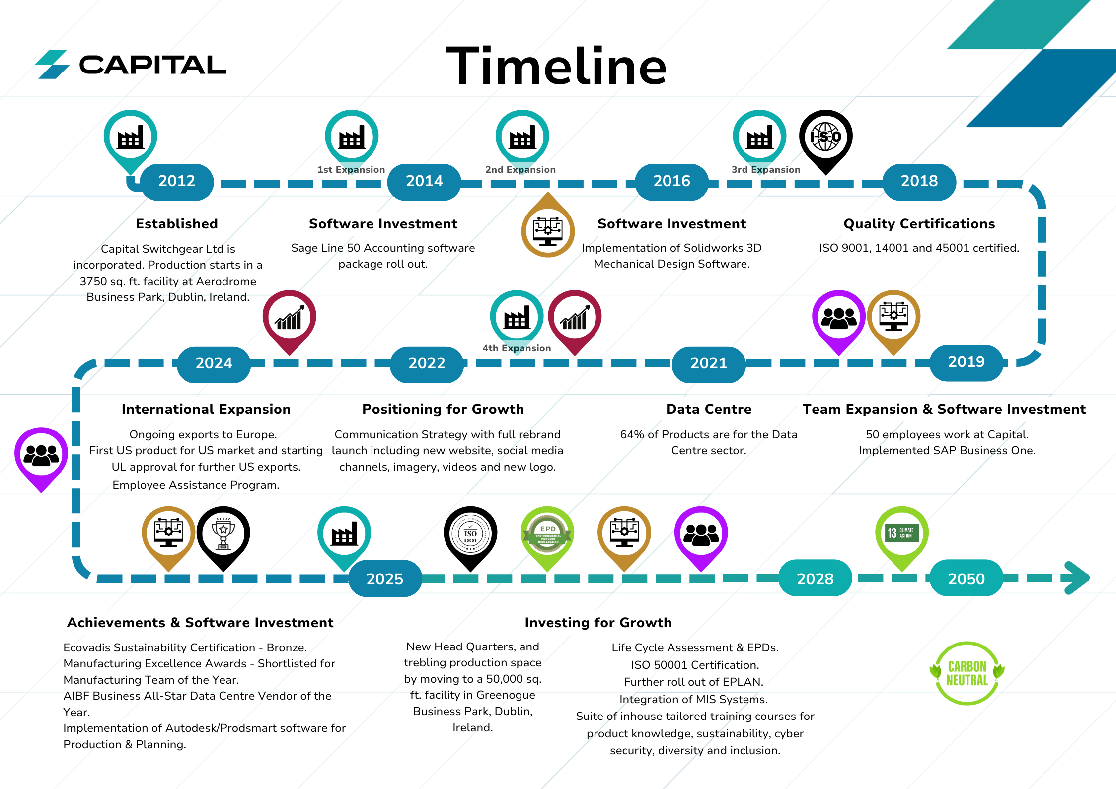 From our beginnings in 2012 at a 3,750 sq.ft. facility in Dublin’s Aerodrome Business Park, Capital has grown through continuous investment, strategic expansion, and a commitment to engineering excellence.
